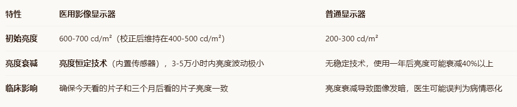 显示器使用时间越长,亮度会自然衰减。这一物理特性在医疗场景下是致命的。
